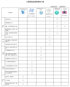附表: 口罩類型及推薦使用人群